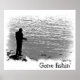 Let's get away from it all and go fishing! Easily customise or remove the text on this poster which features a black and white image of a solitary fisherman standing on a rock ledge at Seneca Lake in Geneva, New York. The text reads: Gone fishin'