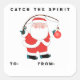 Funny Christmas holiday gift tag stickers, party favour labels or envelope seals featuring Santa Claus fisherman, holding a fishing rod with an ornament on the hook.