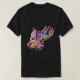 I give wanted to give this a 4 instead of a 5 because these Basic DARK T0shirts run unexpectedly SLIM or Narrow. Which is great if you do not have a potbelly, but I have a paunch. It isn't the shirt's fault that I've got a beer belly. The design and shirt itself is a quality cotton shirt. The color is more of a deep purple, but still a very pretty color. The Basic DARK T-shirts run a bit SLIMMER than the Basic Ts. The neck is a fraction narrower (or seems to be narrower) also. I'm a paunchy middle-aged woman and my neck is 12 inches (31cm) thick and the neckline fell about the same as in the photo of the man, and I had the desire to tug it a bit. So if you're a thick necked man or like loose shirts, be aware these are slimmer shirts. Once I get rid of my lockdown paunch it'll look great. The shirt washed well in cold water with no apparent bleeding. We don't have a dryer, so it hung dry. Did not shrink. Love the colors and the design. The design looks smaller on my shirt than it does on the model on-line. But still, it looks good on the shirt. The printing looks as it does on the model, just the size seems fractionally smaller. Washed garment in cold water, hung dry and design appeared unaffected.