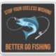 Funny fisherman quote: Stop your useless wishing, better go fishing. Fish graphic and funny quote for a fisherman.