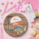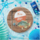 It's a boy in text on a fishing bobber with fishing pole and perch fish. Wood background. Please find matching baby shower products in my store's collections. **Art by ©Tina Hesskew of Fishing Hunting Life.
