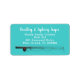 Wide address labels with space for plenty of text. Name, or names in white script at the top can include full first names, Mr. and Mrs. or Family name only. Use 2-4 lines under names for address. Sea blue-green background colour with a fishing rod image along the bottom. Depending on the text, not all sizes will work with this design.