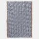 Throw blanket with a unique houndstooth like pattern of little fish in navy blue and white.