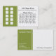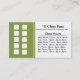 Fitness class business card with optional 10 class pass on back. Card contains 10 boxes to be punched or stamped. Also has room to enter class times or names of classes. Fully customisable, enter in your company information and personalise this card to suite your needs.