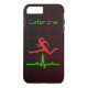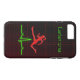 Jumping Woman – © Sunny Mars Designs. Cool maroon feminine Case-Mate iPhone 7 or 8 Plus Case Covers with a pink silhouette of a woman jumping over an ECG graph or heart rate monitor against a dark red grid background. Perfect for a fitness coach, a personal trainer or a fitness instructor.