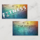 Professional Fitness Personal Trainer Bold Text Dumbbell Logo with Colourful Grunge Background Business Card Template.