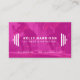 Stand out with this cool and modern business card. Perfect for personal trainers, coaches and other fitness professionals, it features a bright magenta pink over your photo along with a barbell image framing your business name. With room for contact info and more text on the coordinating pink back, this trainer business card is the perfect design to grab clients' attention.