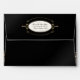 This envelope fits 5 x 7 size invitations or cards. PLEASE NOTE: Envelopes are hand printed and hand assembled by Zazzle, therefore they take longer to make than your invitations. Please allow about a month extra in your timeline when ordering them! If you can't wait, an alternative is to order matching address labels. COLOR PALETTE: Cream, black, gold, tan and green. DESIGN COLLECTION: Perfect to use for Save the Date Announcements, Wedding Invitations or Bridal Shower Invitations of the same design. Also can be used for any formal event. This is a sophisticated antique art design that mixes vintage book art with original art and graphic design work by Audrey Jeanne Roberts. Designed to look like "gold metallic" scroll work and swirls, the border is laid over a black border which is laid over an all over pattern of tossed lilies and a pearly, creamy white background. On the top is an ornate swirl frame and the bride and groom's monograms or initials. Easy to personalise with the template fields, your wedding invitation text can be custom worded for your own needs. On the reverse side is a large complete lily with a border of swirls and an oval frame that holds the bride and groom's names and wedding date and the same creamy white background. CUSTOM COLOR: There is a wide range of colours offered, but should you need a custom colour, just email us and we're happy to help.