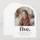 A simple 5th Birthday invitation featuring your own photo in an arch shape and the words 'five.' underneath. You can add your own photo quickly and easily in this design.