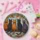 Five Cats on a Tree Branch Stained Glass Style Paper Plate