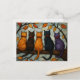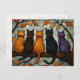 Five Cats on a Tree Branch Stained Glass Style Postcard