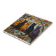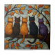 Five Cats on a Tree Branch Stained Glass Style Tile