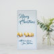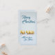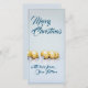 Five golden christmas balls - blue writing