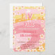 Girl groovy birthday invite. Retro, 70's, hippie, daisies, sparkles.