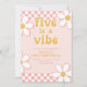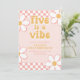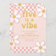 Five is a Vibe Retro Check Pink Daisy Invitation