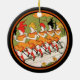 Christmas ornament or everyday home decoration featuring a vintage illustration of five vintage ladies cycling on the road.