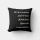 This simple, minimalist square throw pillow, with room for five names, is a wonderful gift for a new home or housewarming party - or for yourself, of course! Great keepsake gift for new parents or grandparents. It is black and white, but easy to change colours. Back is solid black. All Rights Reserved © 2024 Alan & Marcia Socolik