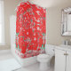 Five Phoenixes in Garden Chinese Red Floral Shower Curtain