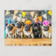 Five Pugs with Party Hats Together Postcard
