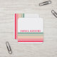 A business card template with a five coloured horizontal stripe motif on the front with the same stripes running vertically on the back and aligned to the left. Name on the front in double spaced letters. The name is also repeated on the back with the job title/position and contact details underneath. This card template has primarily designed for an individual or freelancer it can of course be further customised and could easily be adapted for other uses.