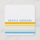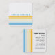 A business card template with a five coloured horizontal stripe motif on the front with the same stripes running vertically on the back and aligned to the left. Name on the front in double spaced letters. The name is also repeated on the back with the job title/position and contact details underneath. This card template has primarily designed for an individual or freelancer it can of course be further customised and could easily be adapted for other uses.