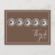 Stunning montage of five beautiful white daisies contrasted against a brown colour background. The flowers cover the front of this postcard which can be used as a thank you card, a birthday card, or any other card of your choice. Customise it with your text and/or pictures to make it one-of-a-kind!