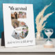 Commemorate your five years of marriage with our Five-Year Wedding Anniversary Photo Collage Tabletop Plaque with Easel. This elegant collage beautifully arranges 7 cherished photos in the shape of a number "5", allowing you to relive the special moments from each month of your journey as a married couple. Expertly printed on premium-quality material, the collage is designed with a sleek built-in easel for easy display on any tabletop or shelf. There is text that reads " We survived 5 years and our love is still strong". If you like, you can personalize this text with your own message instead.