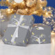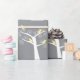 Like pretty wrapping paper? Five adorable abstract yellow birds hang out in a pretty white tree against a grey background on wrapping paper.