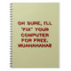 This reads, "Oh sure, I'll "fix" your computer for free. Muahahaha!!" What is it with people asking if they can get their computers fixed for nothing? How about some free car repairs, free home repairs, maybe some free doctor visits...yeah right?