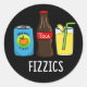 Fizzics Funny Fizzy Cola Drinks Pun Dark BG Classic Round Sticker