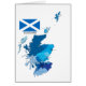 Colourful flag and map of Scotland with all the council areas, burghs identified.