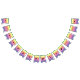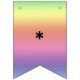 Rainbow stripes as background on each flag (from top to bottom: green, yellow, orange, red, pink, purple, blue). Personalise each flag with your text . Defaults to ****RANDOLPH****