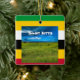 Colourful ornament inspired by the flag of St. Kitts and a beautiful photograph taken during a one day visit by cruise ship.