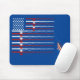 Flag design with red and white fishing poles and patriotic fish on fish line with blue background.