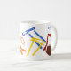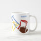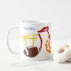 Create a personalised gift that's perfect for flag football players and flag football coaches. This mug features illustrations of footballs and a colourful assortment of flag belts. It's ready to be personalised with a name in blue lettering. The name appears on both sides of the mug. The graphics wrap around the mug.