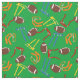 This patterned fabric is perfect for crafting gifts for your favourite flag football players. It features realistic style illustrations of footballs and colourful flag belts against a grass green background.