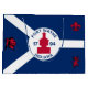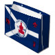 Large Gift Bag with flag of city of Fort Wayne, Indiana; blue and white flag and with red blockhouse in the centre and three illustrations in the blue field - illustration of Native American’s head, French fleur-de-lys and British lion