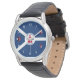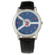 Watch with flag of city of Fort Wayne, Indiana; blue and white flag and with red blockhouse in the centre and three illustrations in the blue field - illustration of Native American’s head, French fleur-de-lys and British lion