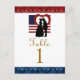 Beautiful USA flag heart patriotic or military wedding themed party table number cards. These vibrant coloured patriotic table number cards are a wonderful addition to any patriotic themed party or military party. The design features an American flag with a heart and a bride and groom silhouette, in colours of red, white, blue and black on a white background. The top and bottom of postcard are red and blue with a weave design and white stars. A truly wonderful addition to your patriotic party tables! The text is an elegant golden script in template form on this page ready for you to add your table numbers. This design is a match to many of our patriotic and military themed invitations we sell in our store. For more styles and designs of patriotic or military wedding table cards, greeting cards, invites, stamps, and gift items, please visit our store!