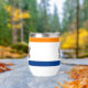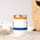 Thermal Wine Tumbler with the flag of Albany, New York. An orange, white, and blue flag with the city emblem in the centre