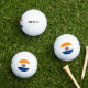 Golf Ball with the flag of Albany, New York. An orange, white, and blue flag with the city emblem in the centre