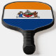 Pickleball Paddle with the flag of Albany, New York. An orange, white, and blue flag with the city emblem in the centre
