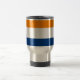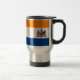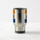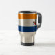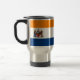Travel Mug with the flag of Albany, New York. An orange, white, and blue flag with the city emblem in the centre