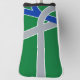 Golf Head Cover with a design with the flag of Albany, Oregon. A green, grey, and blue flag