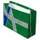 Gift Bag with a design with the flag of Albany, Oregon. A green, grey, and blue flag
