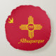Round Pillow with city of Albuquerque, New Mexico; red flag with yellow bird and symbol of New Mexico