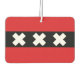 Air Freshener with design with flag of Amsterdam, capital city of Netherlands, red and black flag with three white Saint Andrew’s crosses in the centre