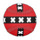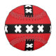 Baseball with design with flag of Amsterdam, capital city of Netherlands, red and black flag with three white Saint Andrew’s crosses in the centre
