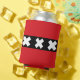 Can Cooler with design with flag of Amsterdam, capital city of Netherlands, red and black flag with three white Saint Andrew’s crosses in the centre