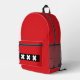 Backpack with design with flag of Amsterdam, capital city of Netherlands, red and black flag with three white Saint Andrew’s crosses in the centre